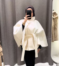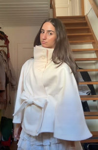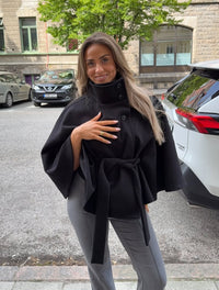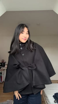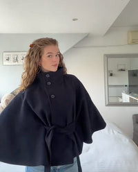 Esta chaqueta capa con cinturón combina elegancia y originalidad: un corte fluido que favorece todas las figuras, realzado por un cinturón que estructura el estilo. Única y atemporal, encarna el espíritu de nuestra marca: refinamiento y carácter.